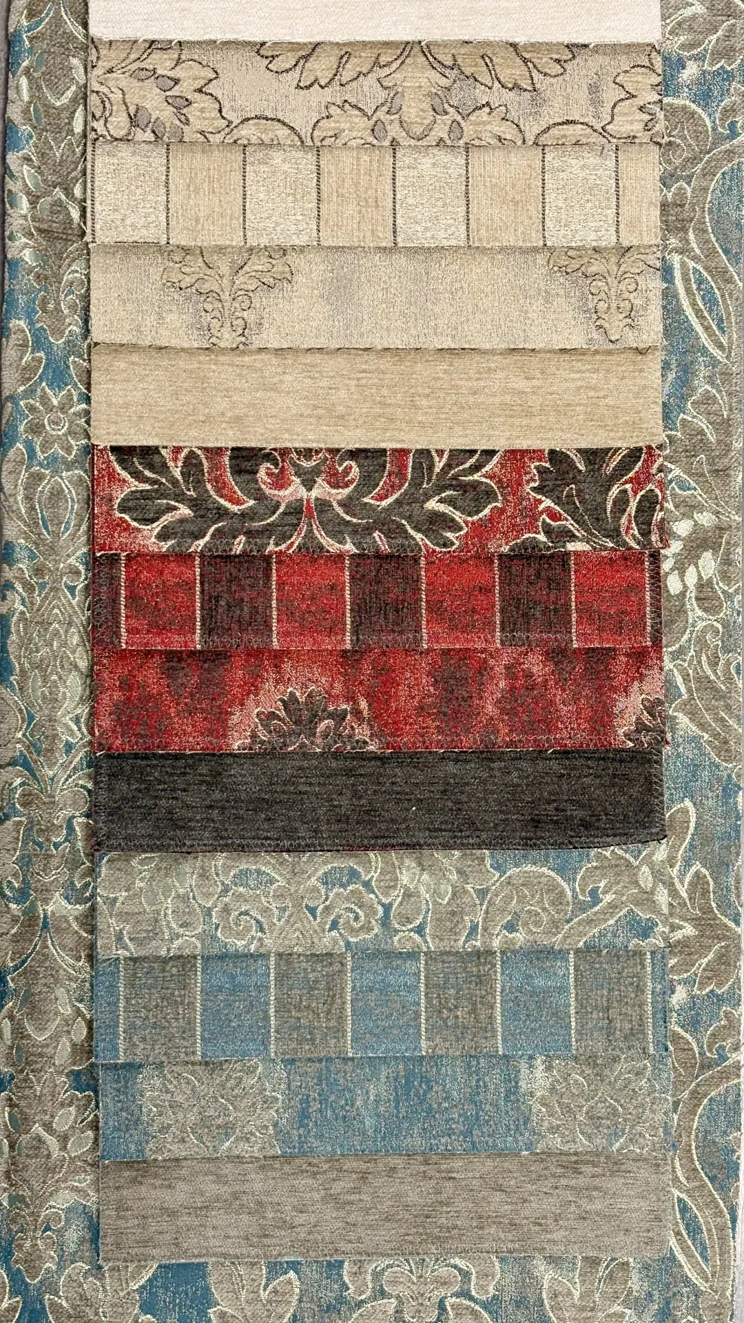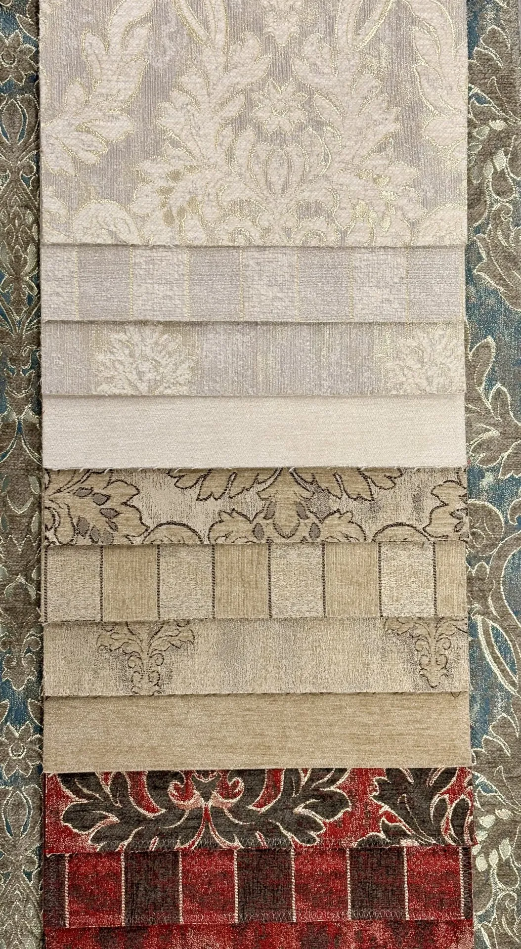 Alanya Serisi, geleneksel damask motiflerini eskitme doku ve çizgi desenlerle birleştiren, klasik tarzı sevenler için tasarlanmış özel bir döşemelik kumaş koleksiyonudur.