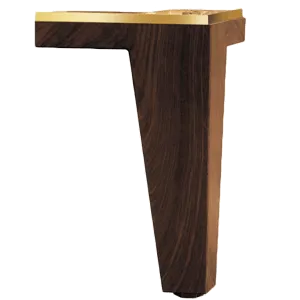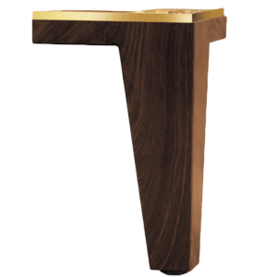 Grande Kübik Ayak; modern hatları, ceviz ahşap dokusu ve üst bölümündeki sarı pleksi dekor detayıyla premium mobilyalar için özel olarak tasarlanmıştır.
