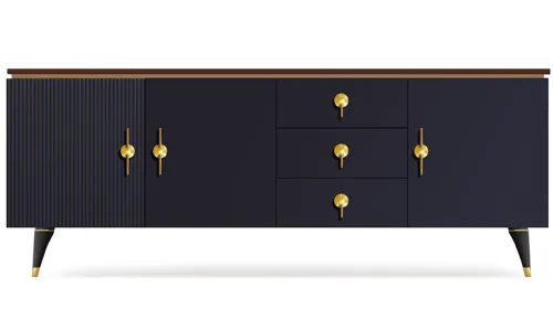 Beyaz gövde + pirinç detay uyumu özellikle modern ve lüks dekorasyonlarda öne çıkar. Çizgili yüzey yapısı mobilyaya daha karakterli bir görünüm kazandırır.