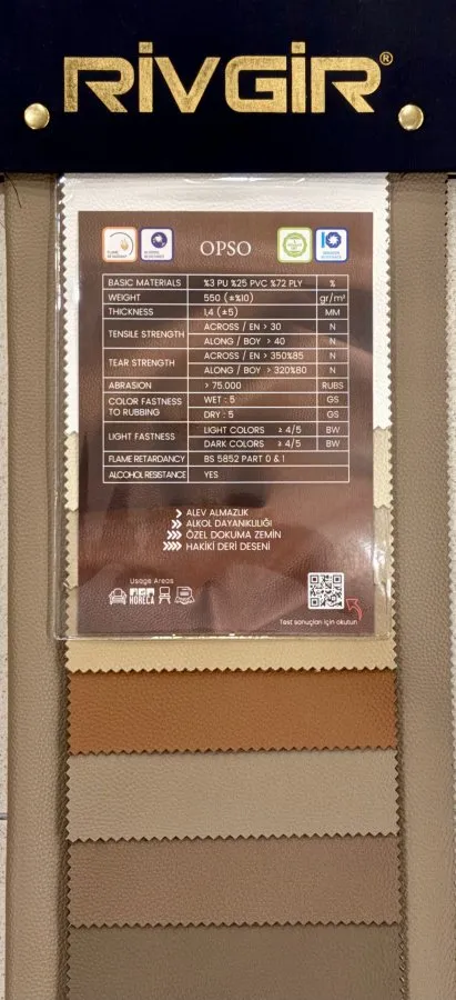 Suni deri ürünlerimiz yüksek kalite standartlarına sahiptir; sigara ve aleve karşı dayanıklı, kolay temizlenebilir ve uzun ömürlü kullanım sunar.
