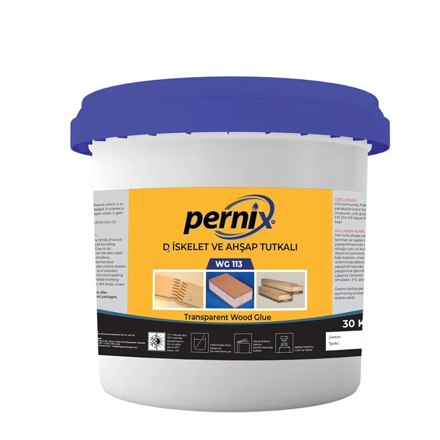 Pernix WG 113, D3–D4 normlarına uygun, profesyonel kullanım için geliştirilmiş yüksek dayanımlı PVA.C ahşap ve iskelet tutkalıdır. Şeffaf kuruyan yapısı sayesinde iz bırakmaz ve temiz bir yüzey elde edilmesine yardımcı olur.
