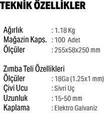 Çivi Tipi: 18 GA